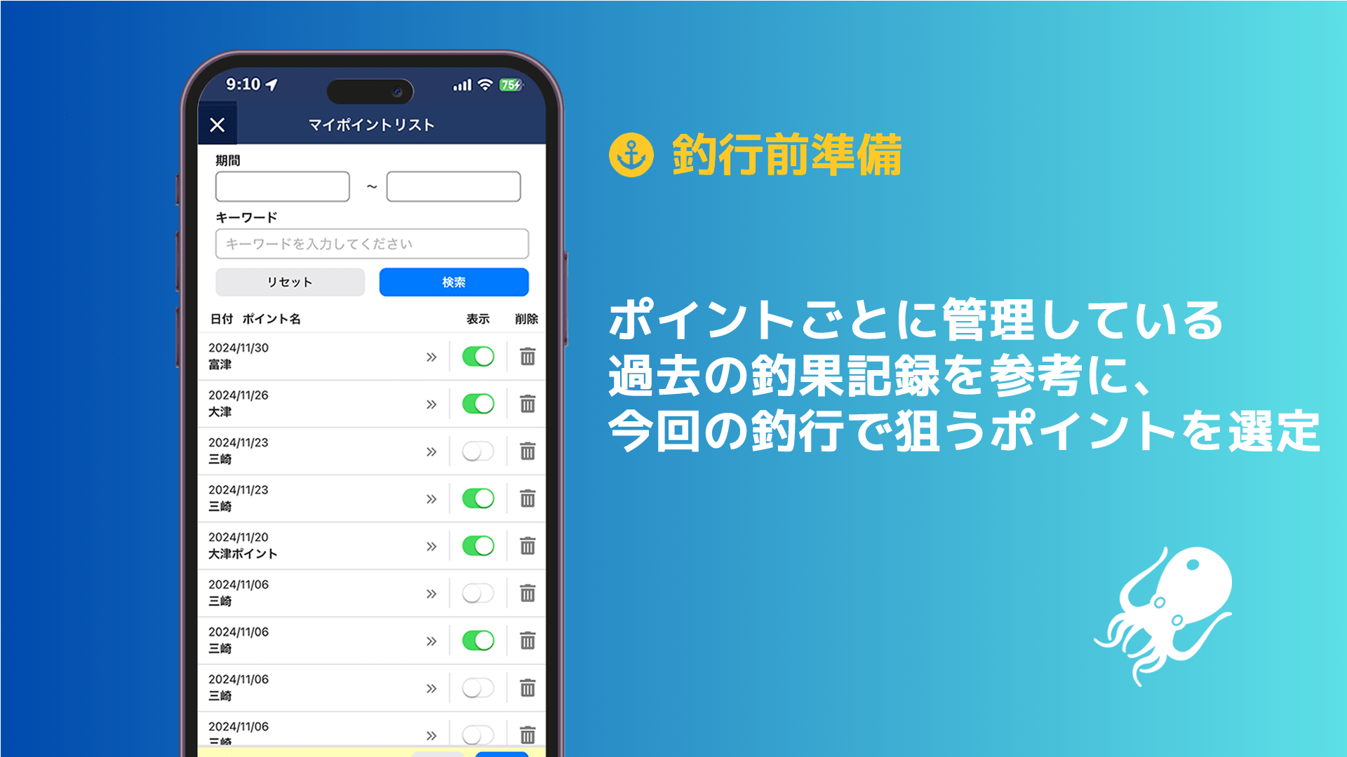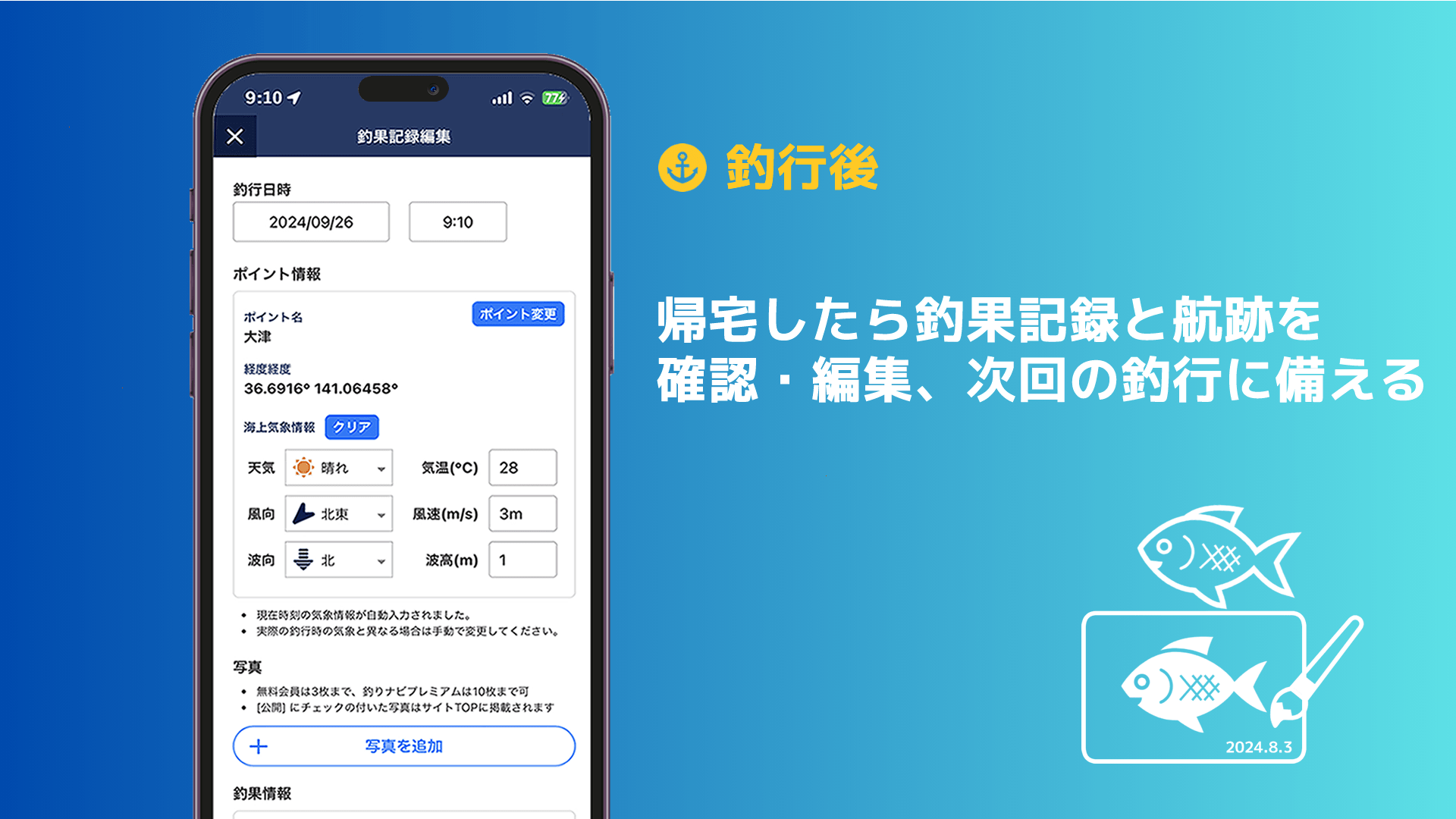 | 釣果記録の登録・編集 | ○ | ○ | 釣りナビくんプレミア |