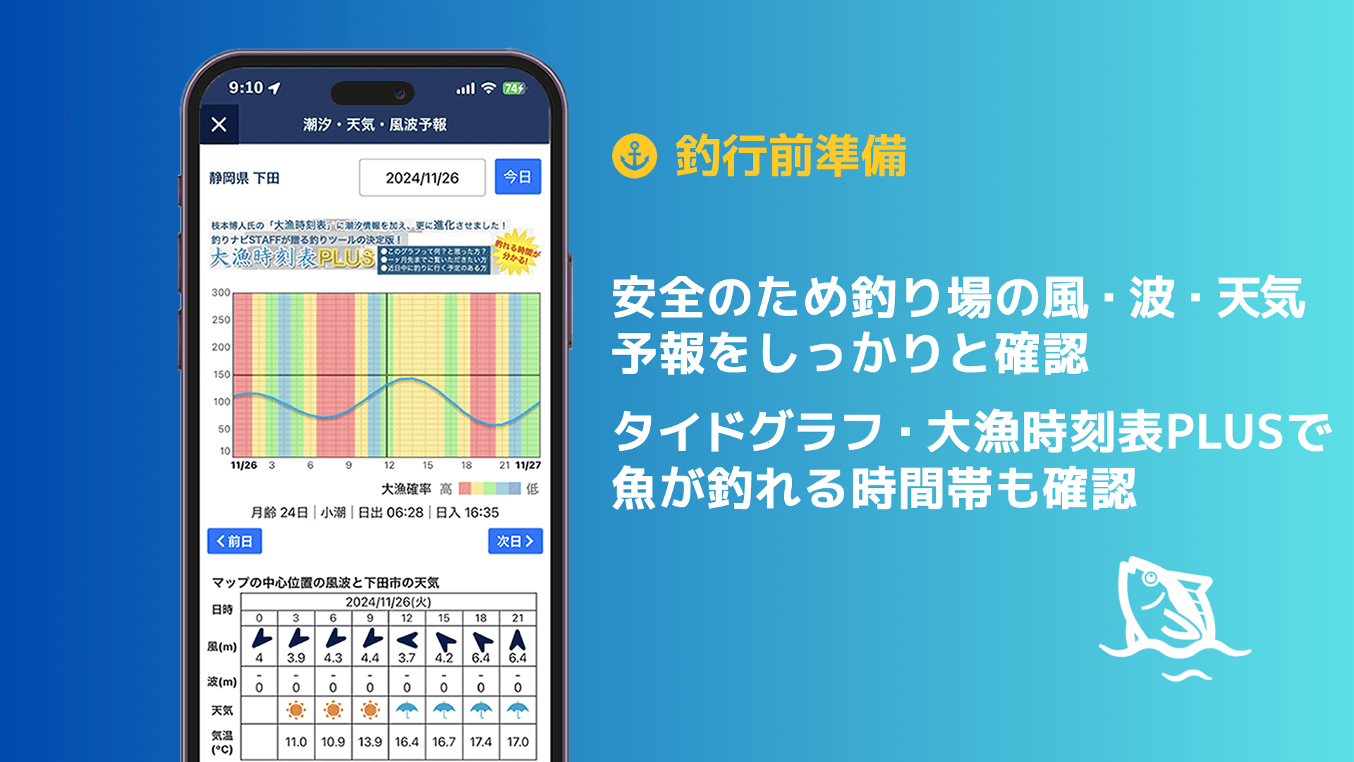 | 釣果予測の表示 | ○ | ○ | 大漁時刻表PLUS |